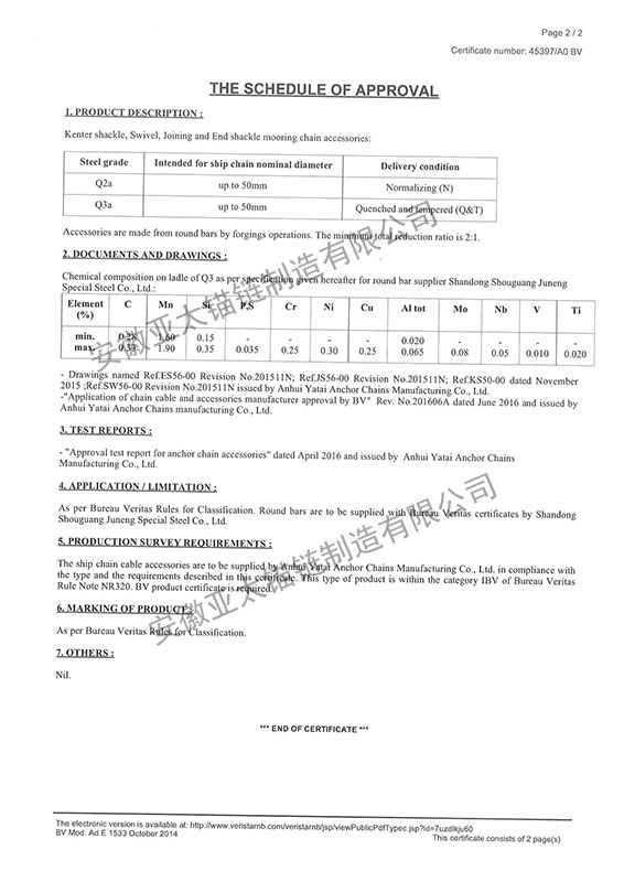 安徽亞太錨鏈制造有限公司是國家高新技術(shù)企業(yè),也是國家GB/T 549-2017《電焊錨鏈》標(biāo)準(zhǔn)的起草和制定單位之一。公司旗下設(shè)有錨鏈分廠、浮標(biāo)分廠、舾裝件分廠等多個(gè)分廠。公司專業(yè)從事φ12.5mm-φ107mm二、三級(jí)船用錨鏈、浮標(biāo)錨鏈、錨鏈附件,錨、船舶曬裝產(chǎn)品、航標(biāo)、系船浮、船型標(biāo)、多種規(guī)格海洋監(jiān)測浮標(biāo)及航標(biāo)燈等產(chǎn)品的生產(chǎn)、安裝和服務(wù)。目前公司的產(chǎn)品銷往全國各地船廠、碼頭、航標(biāo)處、航道局、海洋局,并已走上國際市場,如東南亞、中東、歐美等國家。